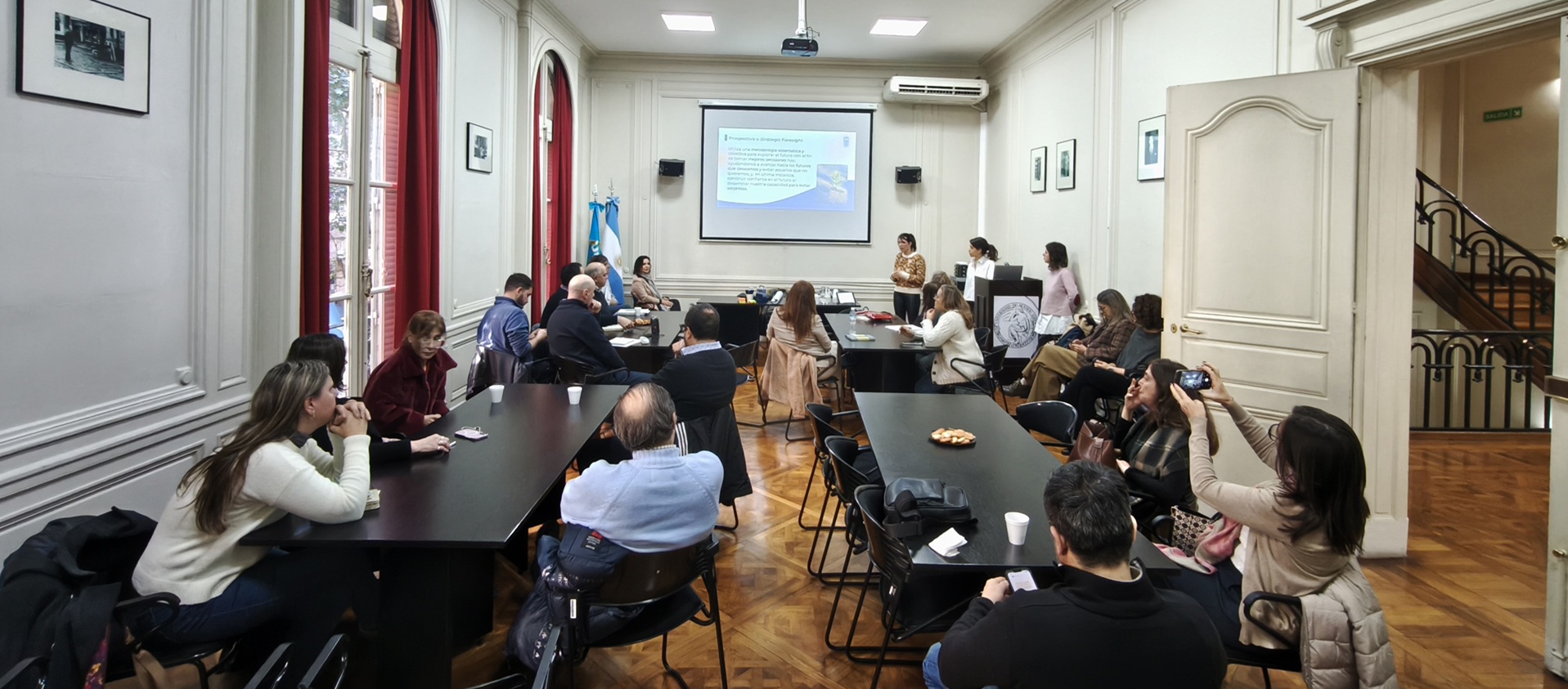 La metodología aplicada —basada en herramientas de prospectiva— permitió a los y las participantes identificar señales de cambio, analizar implicancias y proyectar escenarios para imaginar cómo debería ser la universidad en 2040. En este ejercicio se discutieron temas clave como el impacto de la inteligencia artificial, los desafíos del cambio climático, el rol docente en la transformación social y la necesidad de sostener un modelo inclusivo, gratuito y de calidad.